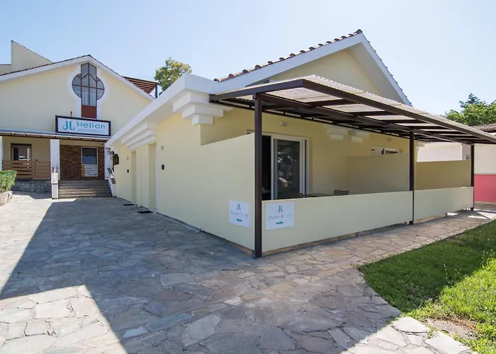 Theotoky Estate fica a 15 minutos de carro e Porto de Corfu fica a 20 minutos de carro de apartamento. O local fica a apenas 300 metros da praia. Servindo cozinha grega, o La Sosteria Italian Restaurant & Pizzeria é cerca de 50 metros de distância. A uma curta caminhada do apartamento Helion Apartments está Loco.
